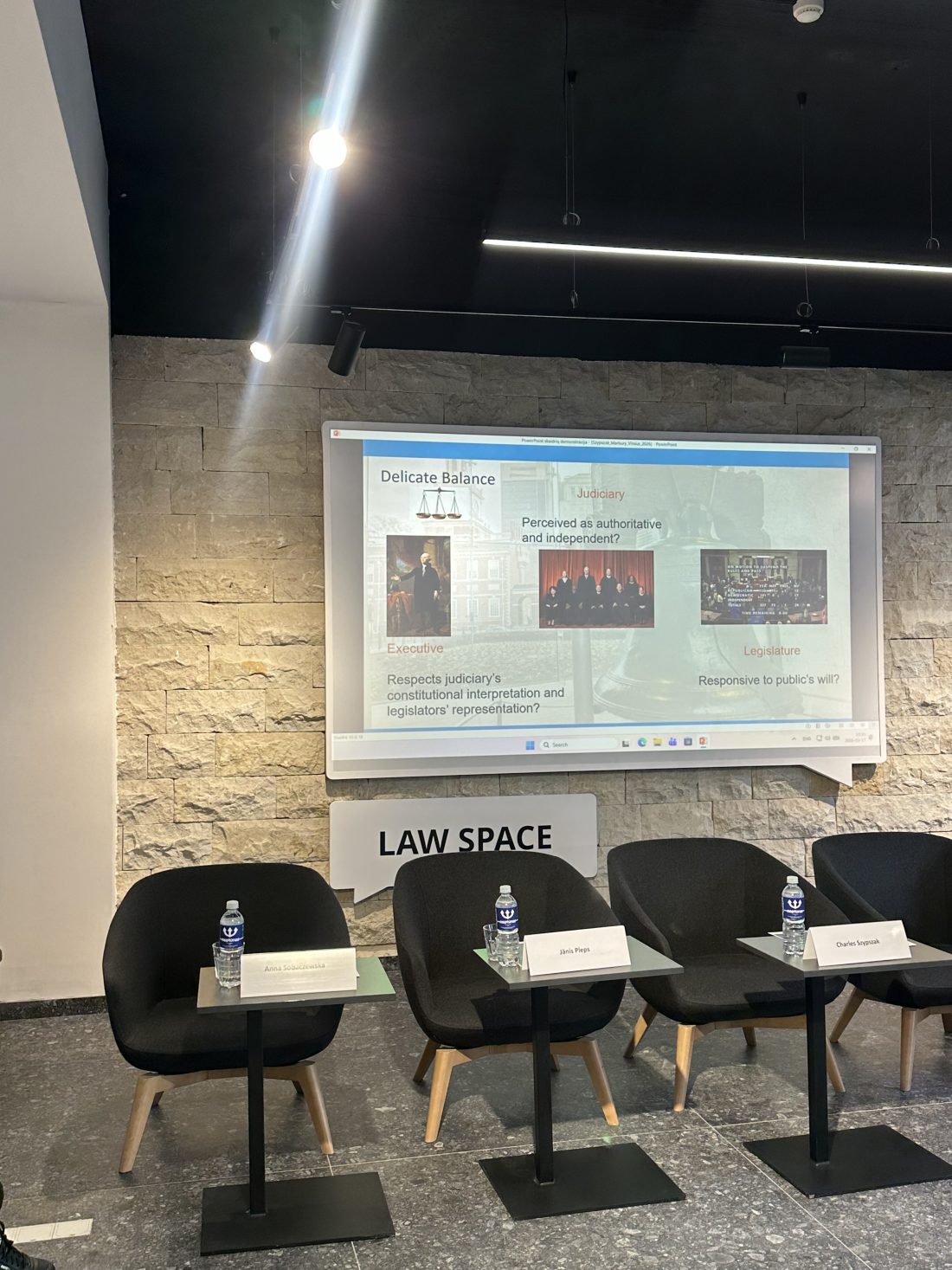 Madis Ernits (Talino universitetas) pristatė „kovojančios demokratijos“ sampratos atspindžius Estijos konstitucinėje teisėje, pabrėžęs gero teisinio išsilavinimo ir teisės viešpatavimo idėją suprantančių ir saugančių teisininkų svarbą valstybėje. Dublino universiteto (Airija) tyrėja Beatričė Mončiuskaitė pristatė įžvalgas iš savo būsimos knygos, kurioje metodologiškai aptariamos Baltijos valstybių liberalios konstitucinės demokratijos.