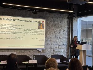 Profesorė Inesa Šeškauskienė (Vilniaus universiteto Filologijos fakultetas) įtraukiančiai pristatė metaforos naudojimo teisėje ir teisiniuose argumentuose ypatumus. Profesorė atskleidė lingvistinę teisinių tekstų pusę, nustebindama gausiai susirinkusius renginio dalyvius tuo, kaip įprasti teisinės praktikos terminai iš tiesų atlieka tam tikrą metaforinę funkciją.