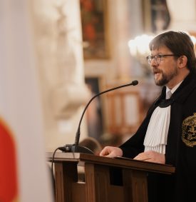 Gintautas Bartkus, Chairman of the Board of the Alumni Association of the VU Law Faculty, also gave a speech at the ceremony. He reminded the audience of the security and ecological problems currently plaguing the world and Europe. “In such a situation, it is useful to reflect on eternal things,“ he added: “There is no trouble in future that you cannot overcome.” Finally, G. Bartkus invited the students to join the Alumni Association.