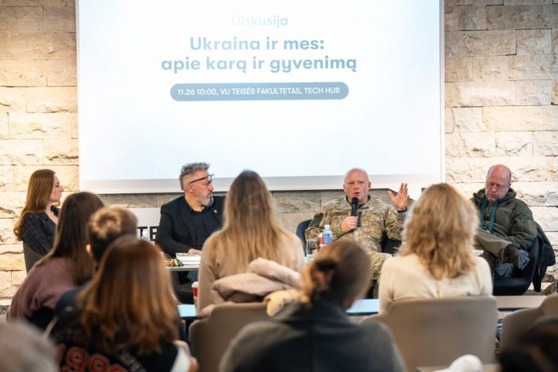Nors pabaigos Rusijos agresijai Ukrainoje dar nematyti, tačiau visuomenės atidumas karui su laiku mažėja. Prisiminti, sugrįžti ten, kur kasdien tenka kovoti dėl laisvės ir pasikalbėti, kokias patirtis įgijome ir kas dar liko neišmokta – toks buvo tikslas lapkričio 26 d. vykusios diskusijos „Ukraina ir mes: apie karą ir gyvenimą“, kur dalyvavo organizacijos Blue-Yellow vadovas Jonas Ohmanas, žurnalistas, režisierius Rimas Bružas ir Lietuvos šaulių sąjungos vadovas pulkininkas leitenantas Linas Idzelis. Svečius kalbino VU Teisės fakulteto Ukrainos teisės centro vadovė doc. dr. Indrė Isokaitė-Valužė.