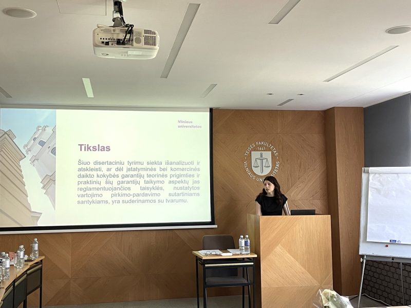 Rugsėjo 3 d. dr. Agnė Selvestravičiūtė-Borowiec sėkmingai apsigynė disertaciją tema „Įstatyminės ir komercinės daikto kokybės garantijos vartojimo santykiuose teorinės ir praktinės problemos“ (vadovė – doc. dr. Danguolė Bublienė).