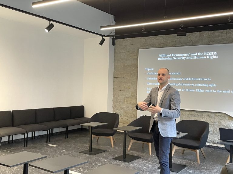 Kovo 12 d. atviroje paskaitoje doc. dr. Donatas Murauskas pristatė „kovojančios demokratijos“ sąvoką ir jos istorinę reikšmę. Jis aptarė dilemą tarp demokratijos gynimo ir teisių griežtinimo bei paaiškino, kaip Europos Žmogaus Teisių Teismas (EŽTT) reaguoja į būtinybę apsaugoti konstitucinę tvarką.