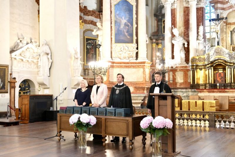 Šiandien Vilniaus universiteto (VU) Šv. Jonų bažnyčioje buvo įteikti magistro diplomai VU Teisės fakulteto absolventams. Šia išskirtine proga buvo džiaugiamasi studijų pasiekimais, skambėjo palinkėjimai ir netrūko šypsenų bei juoko. Ši diena Teisės fakultetui išskirtinė – pirmą kartą diplomai įteikti ir vientisųjų sesijinių studijų programos Teisė MAN absolventams.